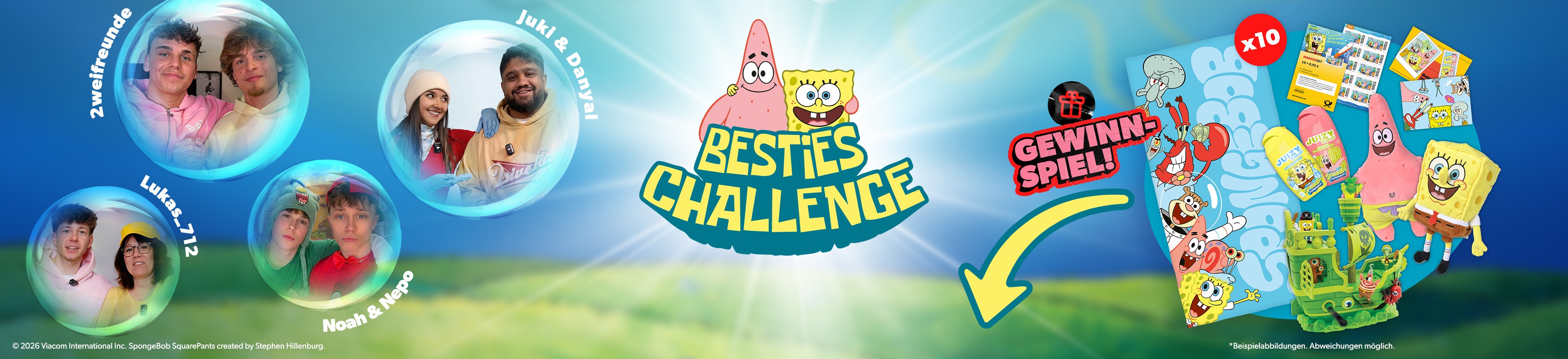 Mit etwas Glück kannst du 1 von 10 SpongeBob Fanpaketen gewinnen, bestehend aus: