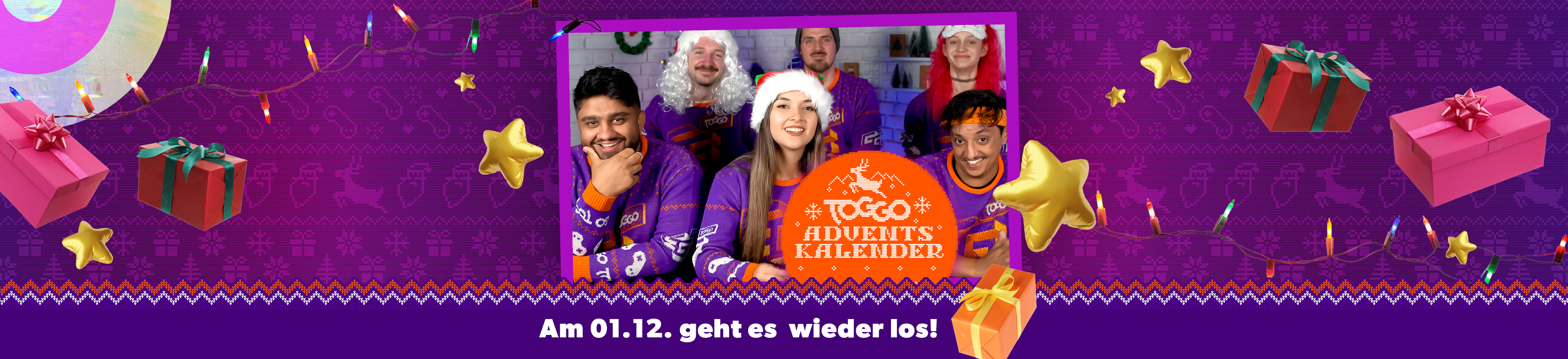 Beim TOGGO Adventskalender hast du 24 Tage lang jeden Tag die Chance, tolle Preise zu gewinnen – und das exklusiv in der TOGGO App! Finde das heutige Türchen und schau dir das Video an. Darin machen deine Stars aus TOGGO GG, TOGGO Hypezeit, TOGGO Liga, Woozle, TOGGO Radio und TOGGO Touchdown viele witzige Sachen passend zur Adventszeit. Von Fails bei Sackhüpfenrennen, Gaming-Battles bis hin zu Versteckspielen bei Weihnachtsmann & Co. KG in Minecraft ist alles dabei.