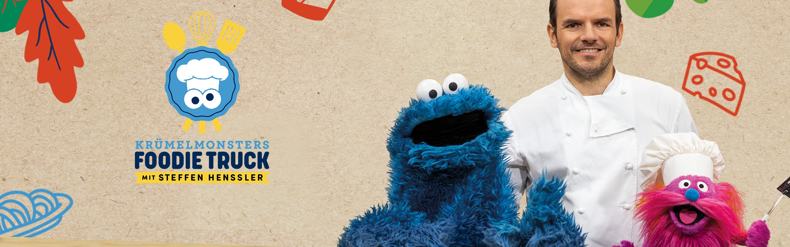 Krümelmonster, Gonger und Chefkoch Steffen Henssler kochen mit viel Spaß gemeinsam einfach und leckere Gericht in ihrem Foodie Truck.
