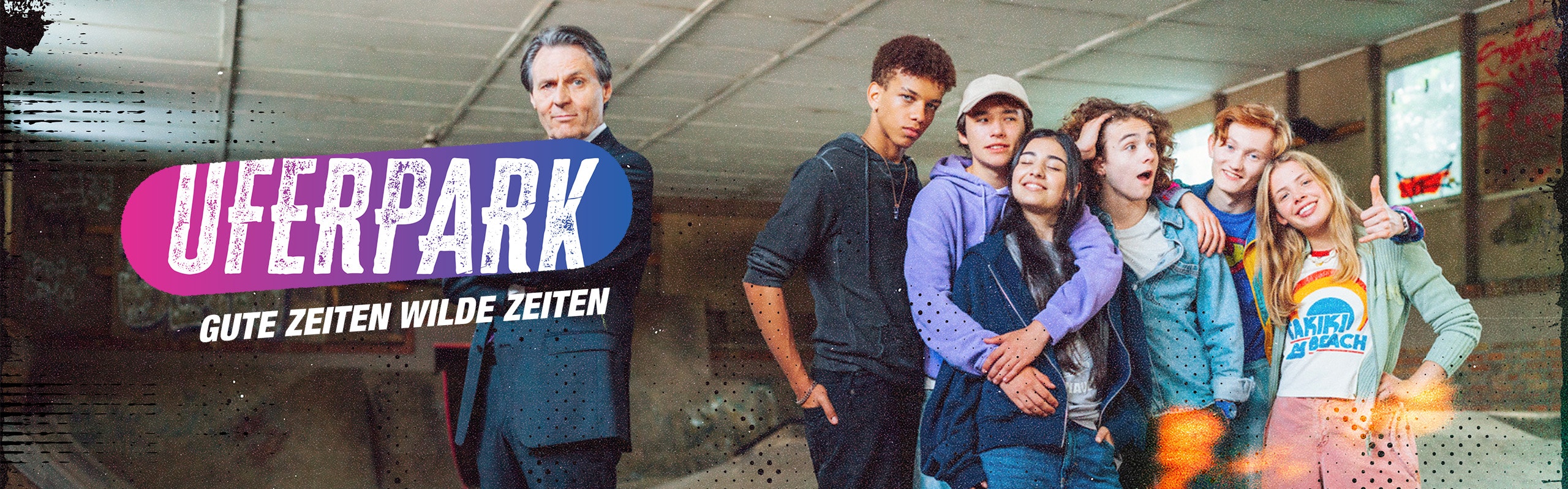 Eine Clique von Teenagern erobert einen alten Skatepark in Berlin und kämpft mit den Problemen des Erwachsenwerdens. Sie verteidigen ihren Platz in der Gesellschaft und stehen füreinander ein. Die Fernsehserie "Uferpark - Gute Zeiten, wilde Zeiten" ist ein Ableger der bekannten Daily-Soap "Gute Zeiten, schlechte Zeiten" (GZSZ) und richtet sich mit Geschichten rund um Liebe, Drama, Freundschaft, Intrigen, Familie, Crime an eine jüngere Zielgruppe.